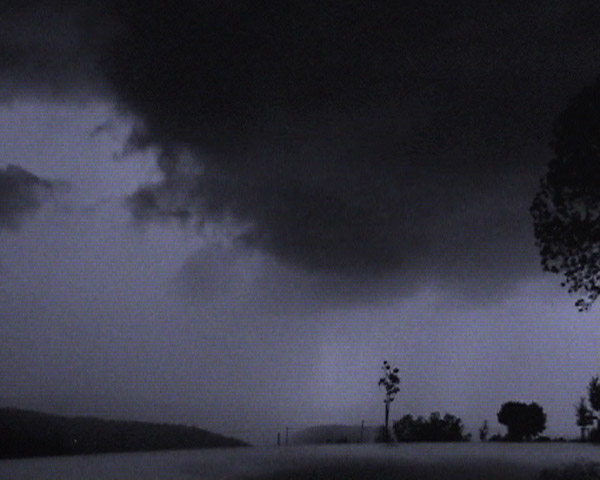 Ich folgte dem System noch bis Falkenbach, wo ich mir auf einer Anhöhe ein Plätzchen suchte, um das abziehende System noch etwas zu beobachten. Vor allem im Südteil über CZ blitzte es kräftig und häufig, nach Norden hin eher sporadisch im MCS. Als nach 22:30 Uhr der nachfolgende Regen langsam nachlies, lockerte die Bewölkung auf und der Mond kam zum Vorschein. Die folgende Kulisse war einfach nur atemberaubend - das stark blitzende, freistehende Südende des Cluster über CZ, darüber der helle Mond. Rückseitig waren auch viele Erdentladungen zu beobachten, einige positive Entladungen schlugen auch seitlich aus den Gewittertürmen heraus im Boden ein. Die Blitzrate schwankte meist zwischen 15 und 20 Blitzen pro Minute. Erst weit nach 23 Uhr verließ ich meinen Standort, weiterhin war fernes Flackern vom abziehenden MCS erkennbar.